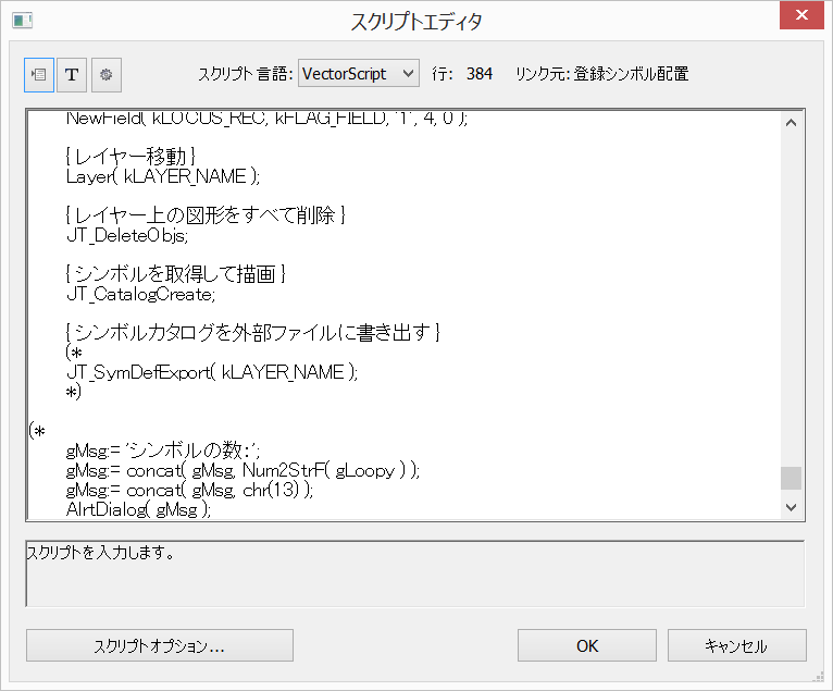 「スクリプトエディタ」ダイアログが表示されます。